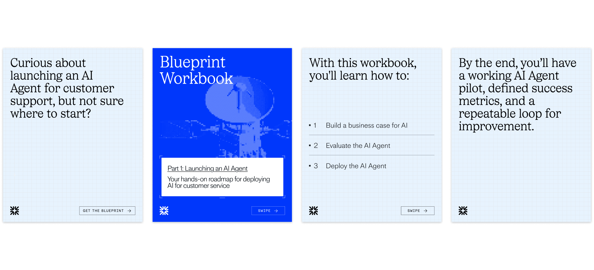 To launch the AI Agent Blueprint, Intercom created a campaign inspired by architectural blueprints—giving AI transformation leaders a clear, strategic map to build and scale AI with measurable outcomes. To counter the topic’s inherent complexity, the design emphasized approachability through custom components and an ASCII-inspired aesthetic that felt technical yet educational. Using Claude and Cursor, the team built a custom app to generate unique glyphs and 3D objects. Anchored by the Fin logo spark, the system scaled across the experience. The launch attracted 14,000 visitors with an average 43 minutes on page, signaling deep engagement.